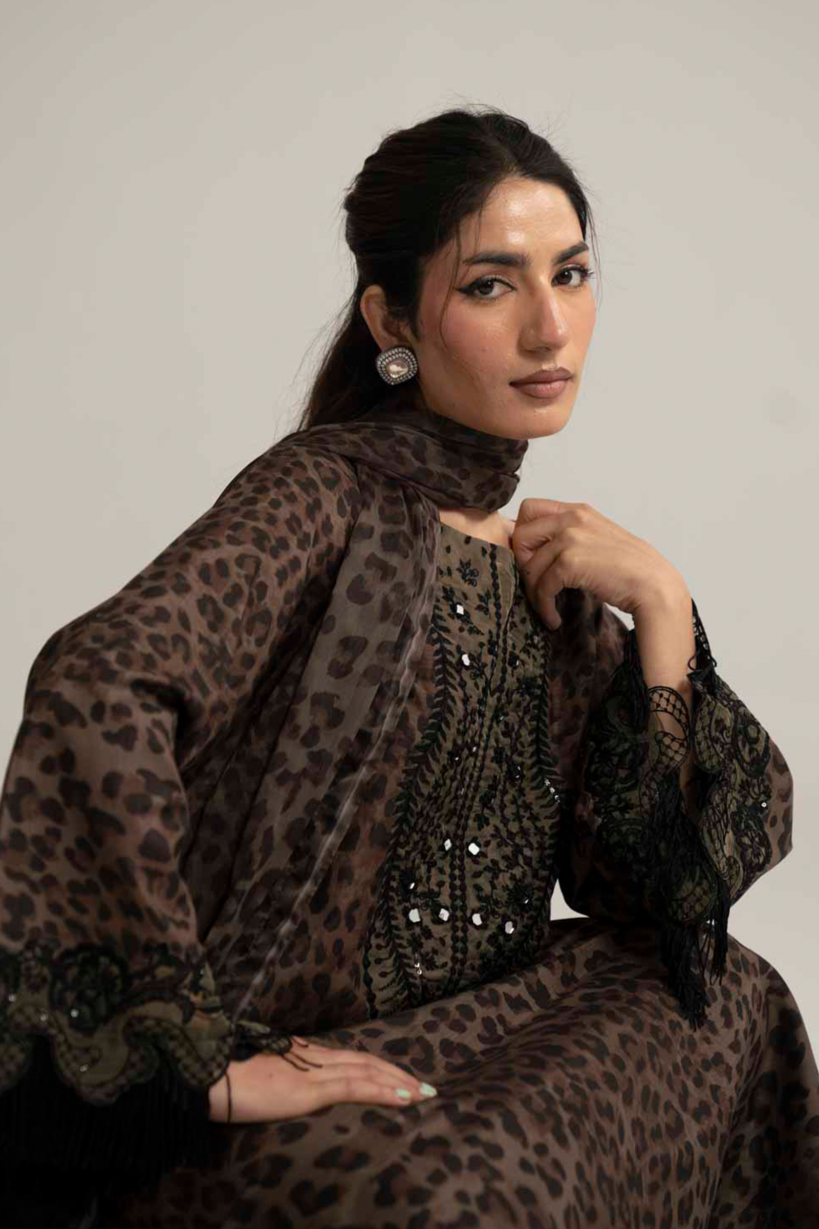 Embroidered neckline with mirror work