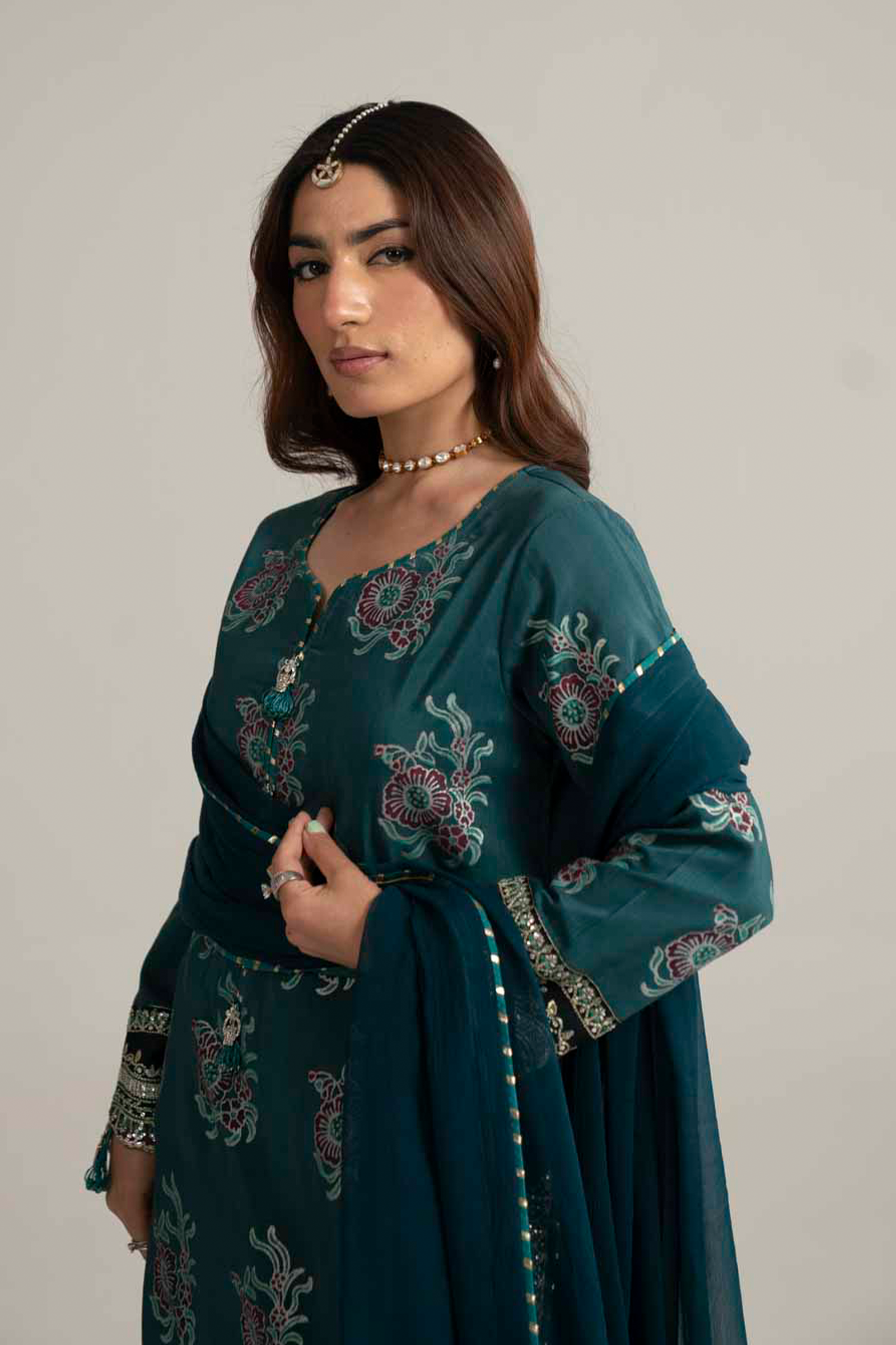 Block print chiffon dupatta