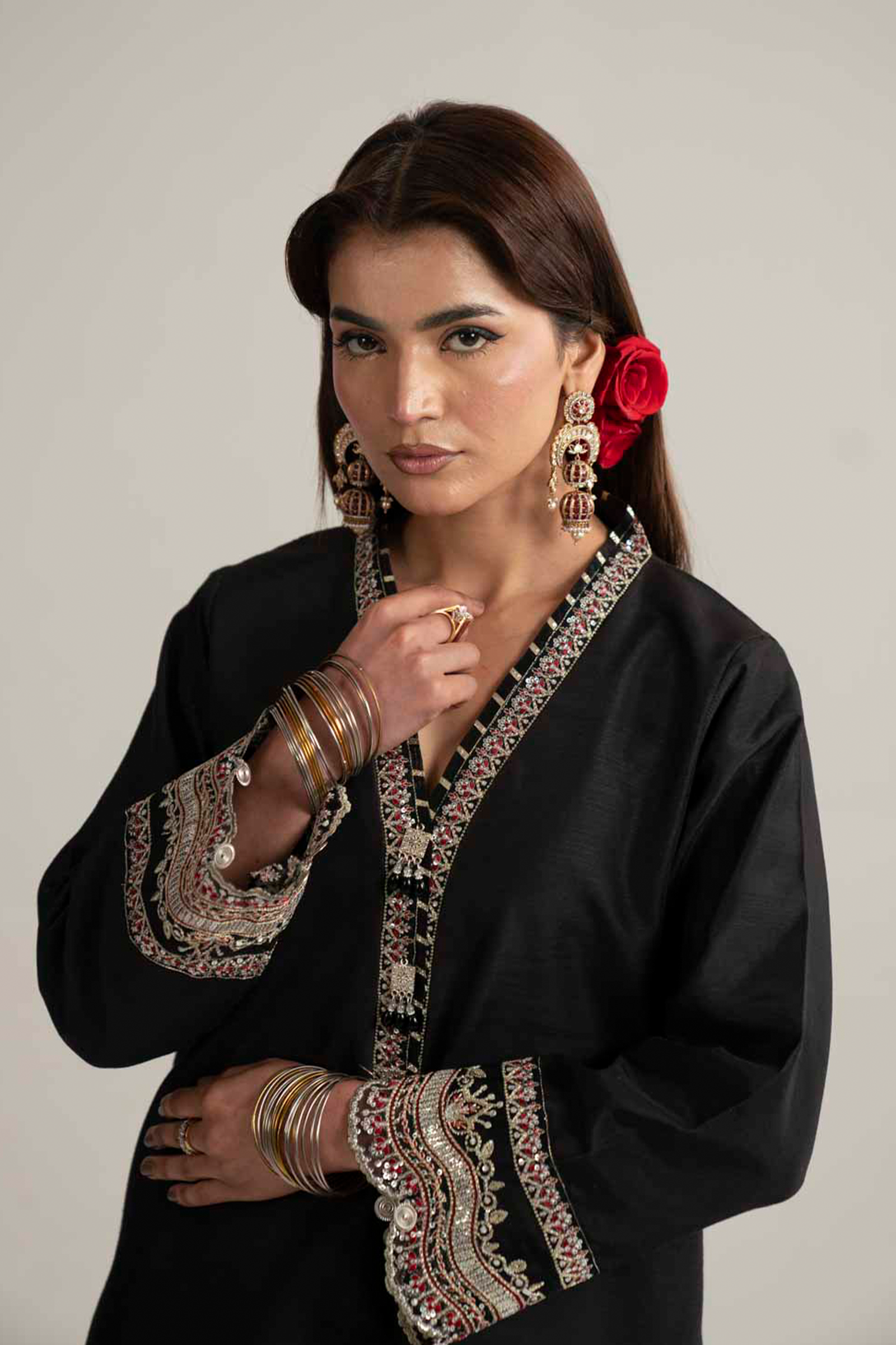 Embroidered Raw silk shirt